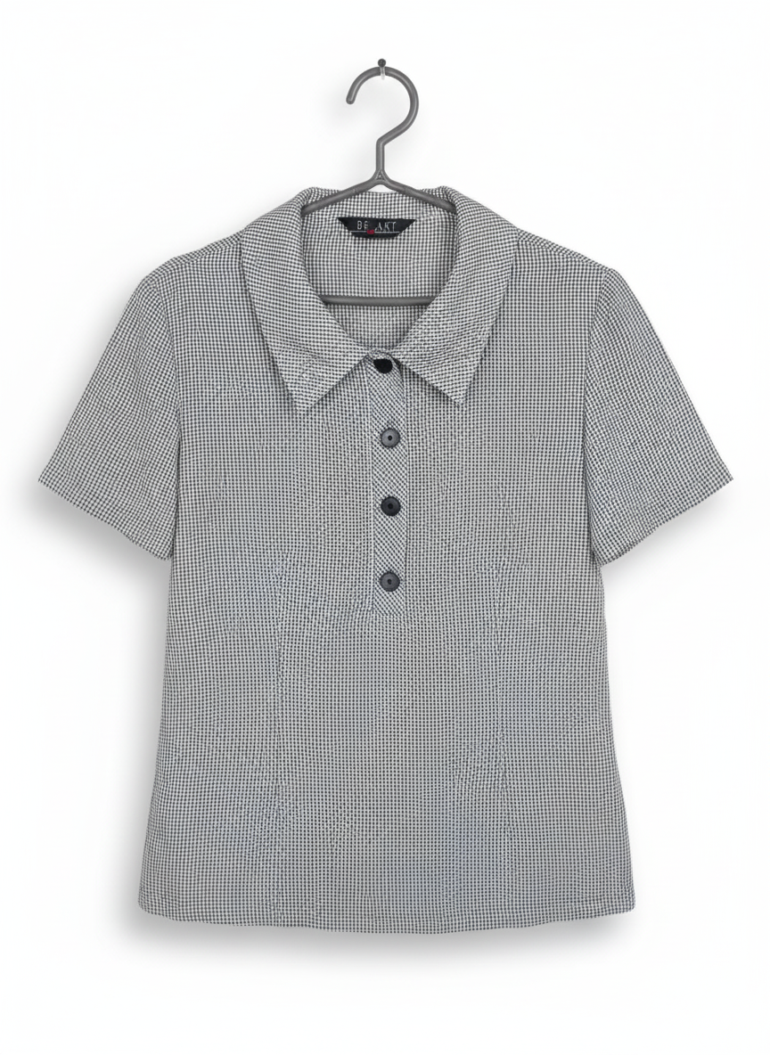 ⚫⚪ Camisa Ajustada de Micro-Cuadros (Talla S) ⚪⚫