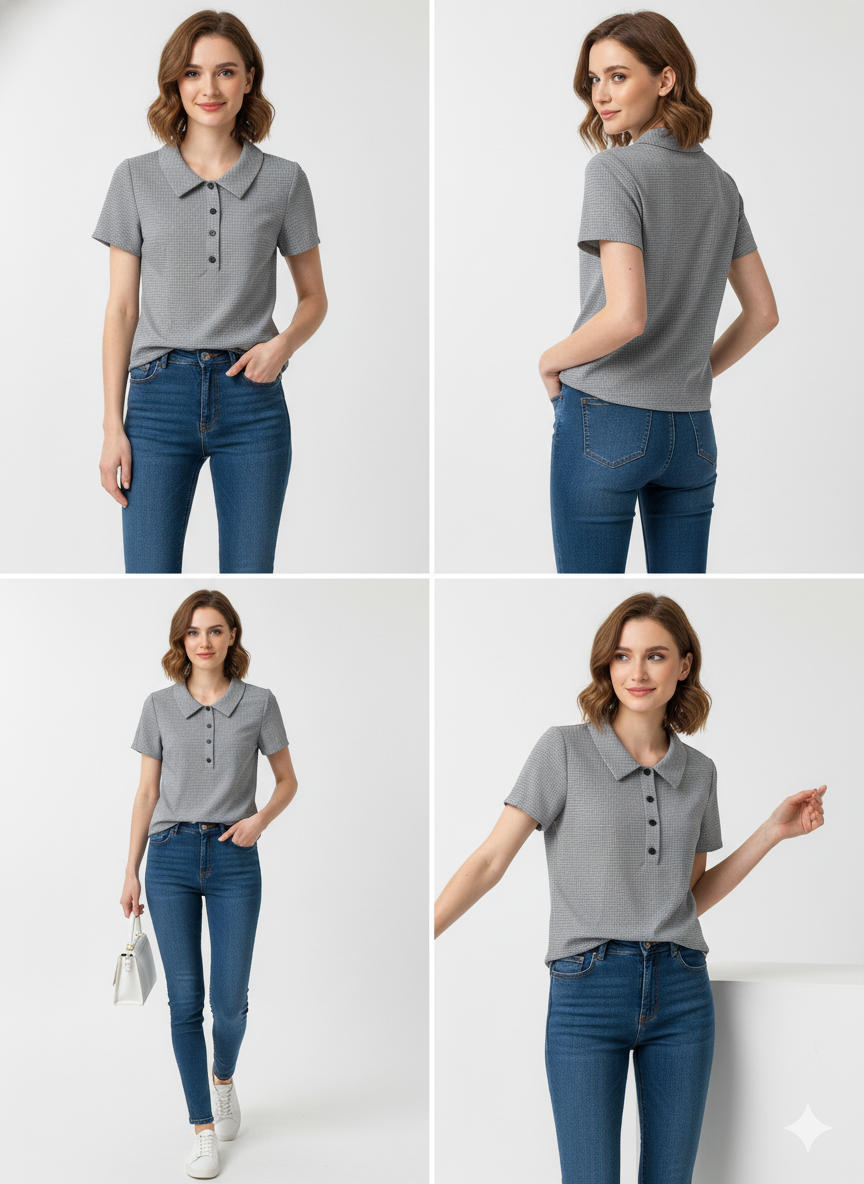 Patrón: Elegantes Micro-cuadros o cuadros Vichy pequeños en tonos Gris y Blanco.