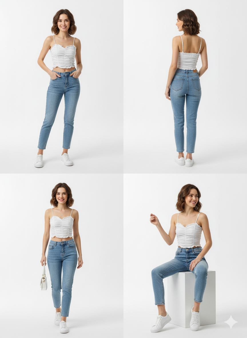 Estilo y Corte: Top crop ajustado con diseño de fruncido vertical (ruching), con un moderno estilo corsetero. Perfecto para el verano, usar con shorts o faldas de tiro alto.